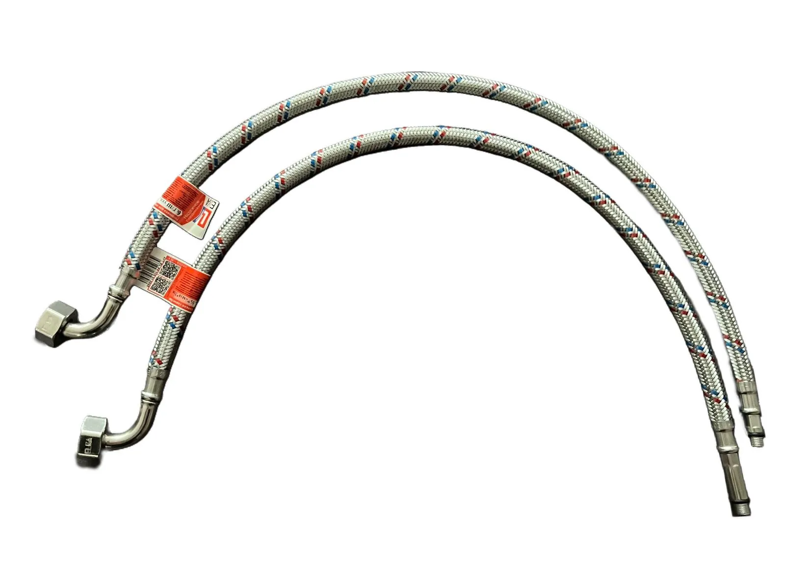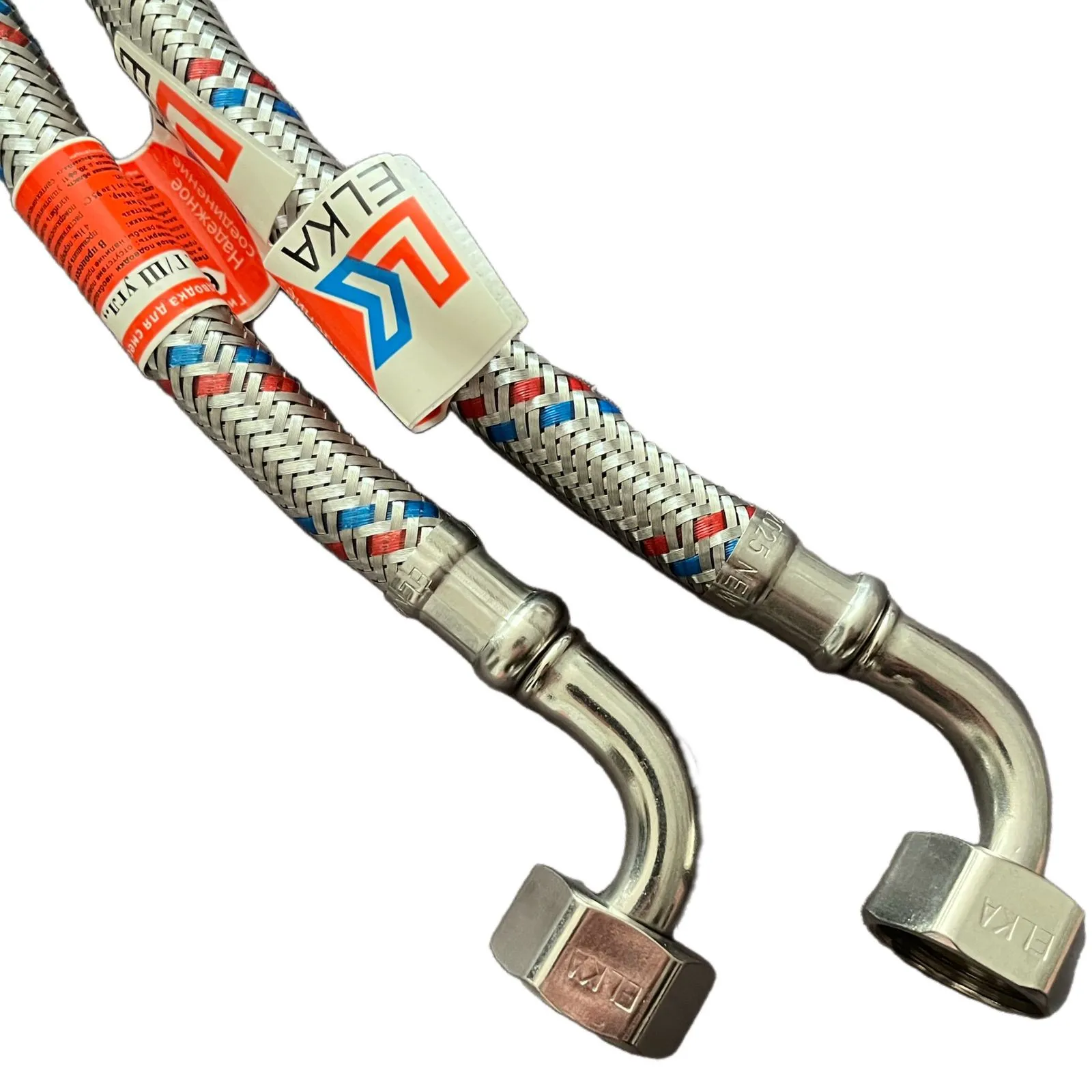 Август 2025 — компания «ЛЮКС ЛК» расширение ассортимента серии гибкой подводки ПРОФИ – подводка для смесителя с угловым соединителем накидной гайки.